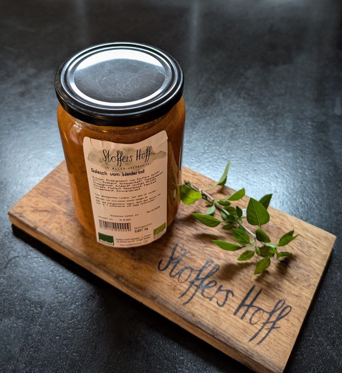 Rindfleisch*° (40%), Pinkus alkoholfreies Malzgetränk* (35%) (Wasser, WEIZENMALZ*, GERSTENMALZ*, Zucker*, Kohlensäure, Naturhopfen*), Gemüse* (Zwiebeln*, Möhren*°, Porre*°), Tomatenmark*, Sonnenblumenöl*, Speisesalz, Paprikapulver*, Pfeffer*, Kümmel*, Majoran*