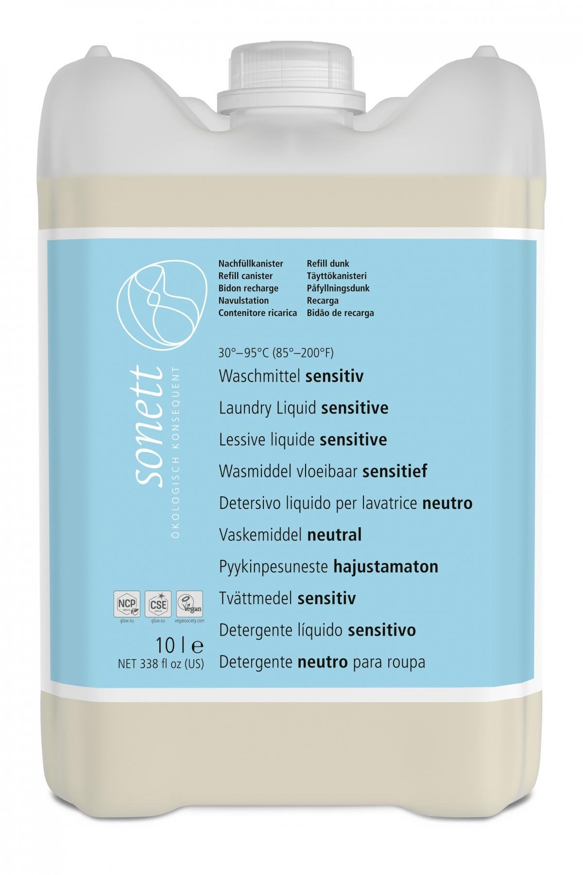 Die besondere energiesparende Sonett-Methode des Verseifens, der Einsatz von Ölen aus kontrolliert biologischem Anbau und ein für Flüssig-Waschmittel ausgesprochen günstiges Verhältnis von Preis zu Waschleistung sind die hervorstechenden Merkmale des duftfreien Waschmittels sensitiv.