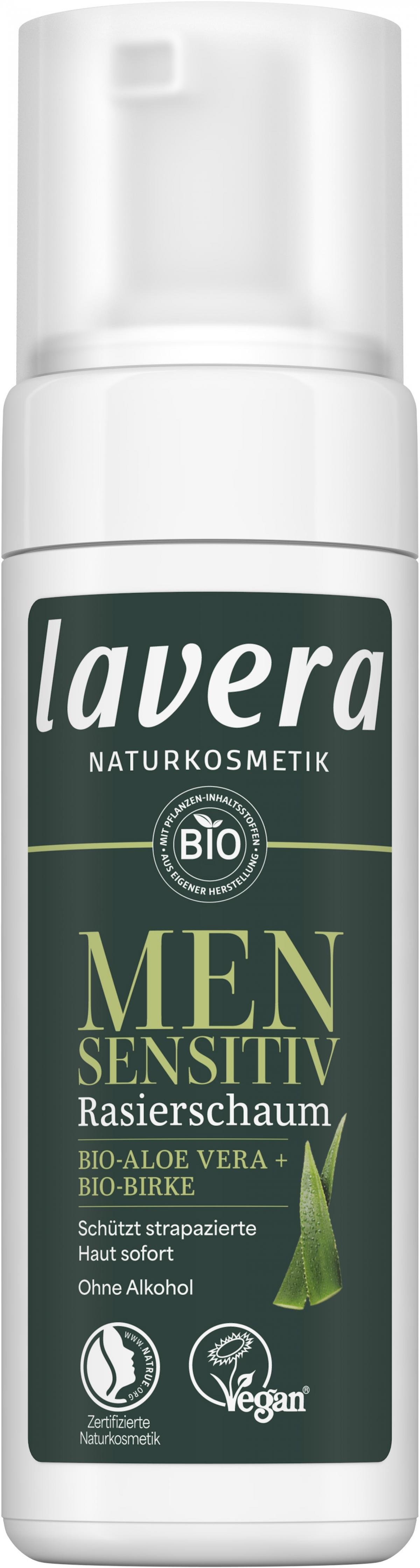 Milde Effektive Naturkosmetik: der MEN Sensitiv Rasierschaum ohne Alkohol beugt Irritationen und Rötungen vor und schützt strapazierte Haut sofort.
