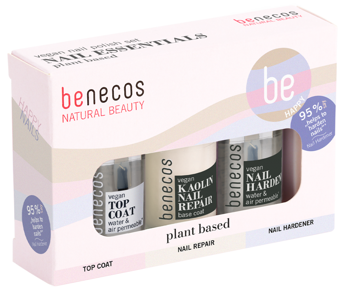 Der Nail Hardener pflegt brüchige, splitternde Nägel mit Bambusextrakt, der Nail Repair mit weißer Tonerde glättet rillige, unebene Nägel und der 20-FREE Top Coat sorgt für einen shiny Look. Deine perfekte Maniküre!
