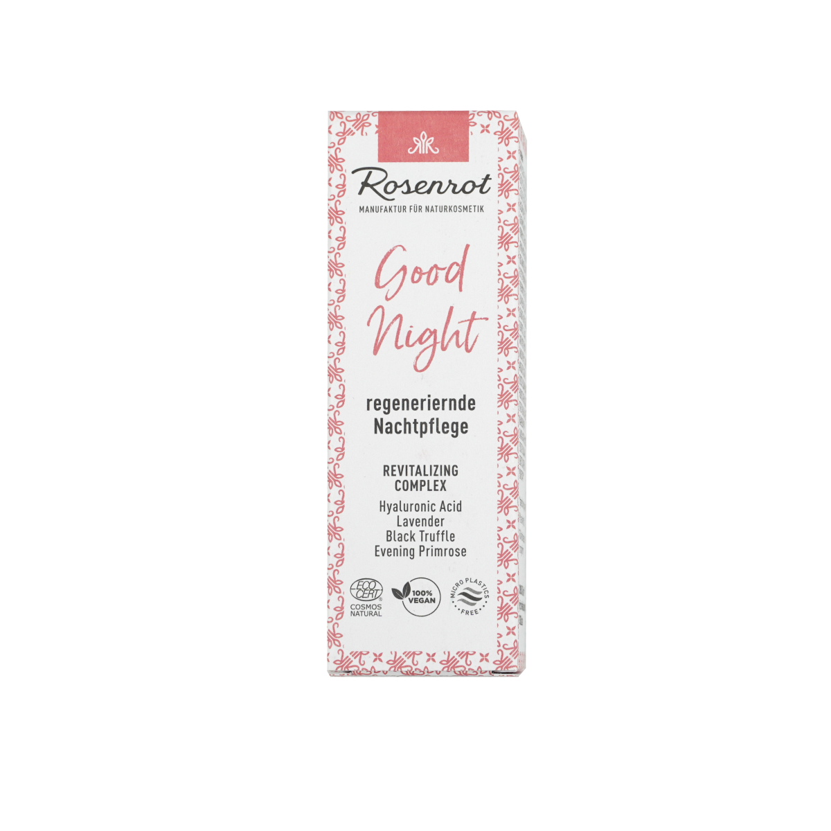 Eine reichhaltige Nachtpflege für die schnelle Erholung und Revitalisierung beanspruchter Gesichtshaut. Mit besonders regenerierenden Pflegeölen, Vitaminen und einem schnellwirksamen Revitalisierungskomplex: Hyaluronsäure, Lavendel- & Trüffel-Extrakt sowie Nachtkerzenöl versorgen die Haut mit Feuchtigkeit und Lipiden und unterstützen die natürlichen Regenerations-prozesse. Revitalisiert die Hautstruktur und sorgt für ein erholtes und strahlendes Hautbild am Morgen.