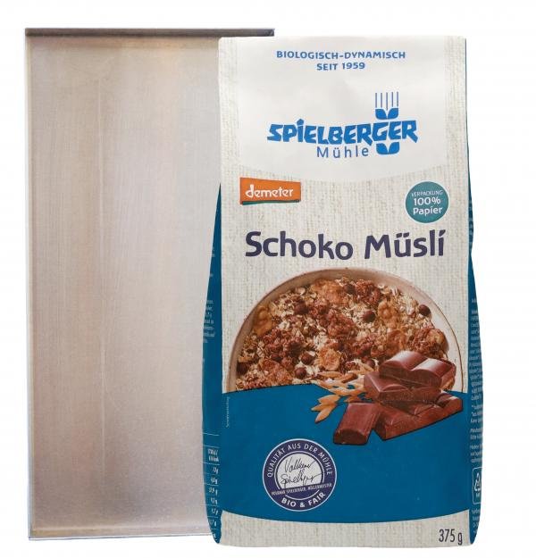 Für dasSchoko Müsli werden beste Haferflocken verwendet, die in der eigenen Flockenmühle mit größter Sorgfalt hergestellt werden. Dank knackigem Zartbitter-Nuss-Crunchy, zarten Schokodrops und feinen Schokoflakes wird die Mischung so richtig schokoladig und knusprig. Ein Müsli für alle, die sich verwöhnen wollen, für alle Naschkatzen und -kater und für alle, die Schokolade lieben.