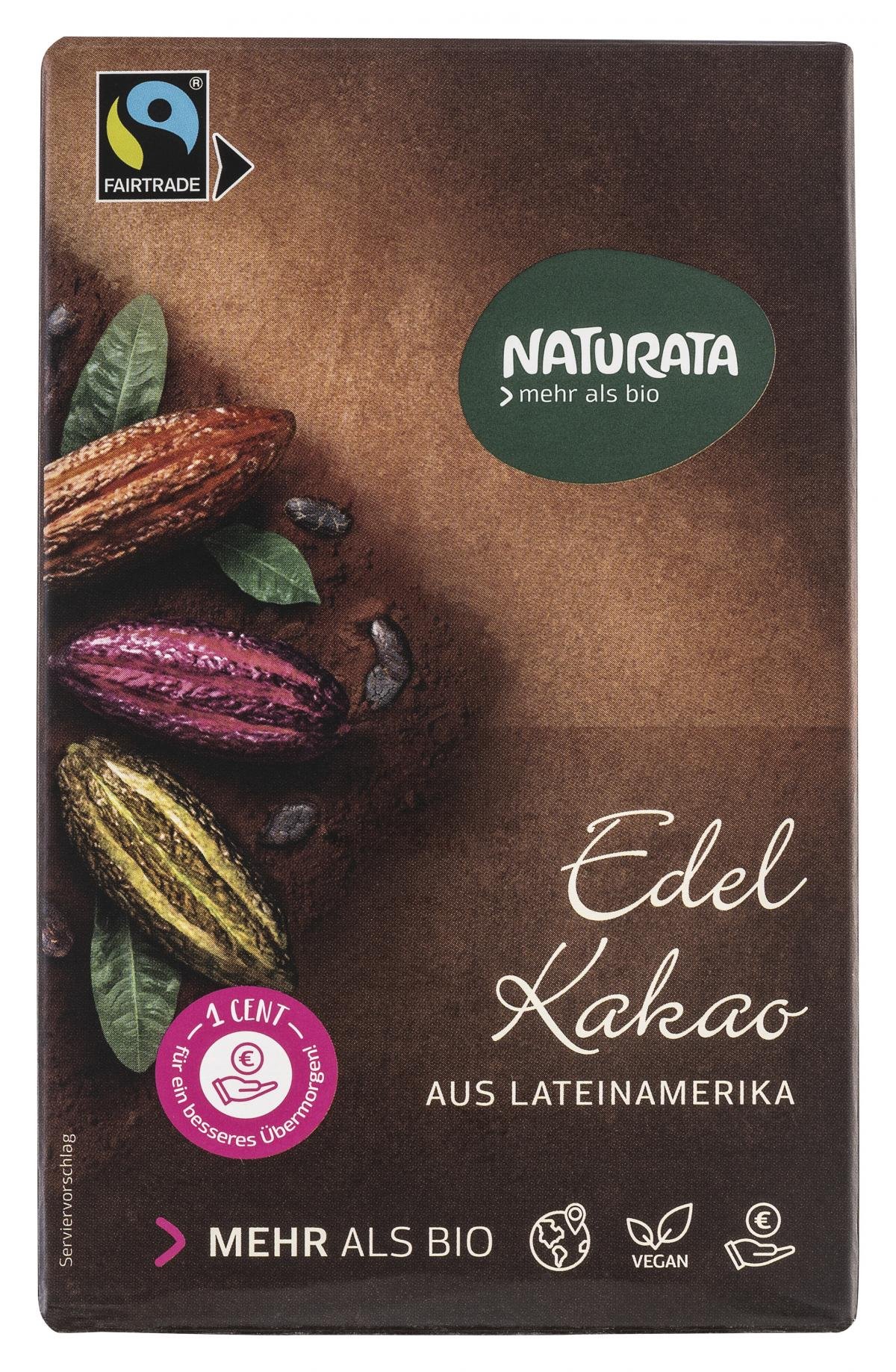 Der Edelkakao von Naturata besitzt im Vergleich zu stark entöltem Kakao (11 % Kakaobutter) einen höheren Kakaobutteranteil (21 % Kakaobutter) und zeichnet sich deshalb durch einen kräftigen, typischen Kakaogeschmack aus. Naturbelassen.