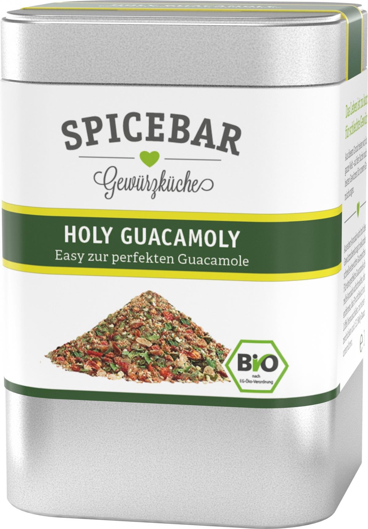 Eine reife Avocado aufschneiden, den Kern entfernen, das grün-gelbe, cremige, nahrhafte Fruchtfleisch mit einem Löffel herausschälen, mit einer Gabel zerdrücken und 1 EL unseres BIO Holy Guacamoly-Gewürzschatzes unterrühren. Fertig ist die perfekte Guacamole. Passt zu Tortillas, Chips, Brot, Rohkost-Salaten u.v.a.m.