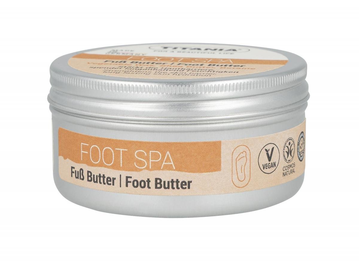 Die TITANIA® Fuß Butter bietet durch ihre cremige Konsistenz und die enthaltenen pflanzlichen Wachse sowie Sheabutter reichhaltige Pflege. Betain schützt die Hautzellen vor Austrockung und sorgt für anganhaltende Feuchtigkeit. Auch als Fußmaske verwendbar. Dazu dicker auftragen, Baumwollsocken überziehen und über Nacht einwirken lassen.