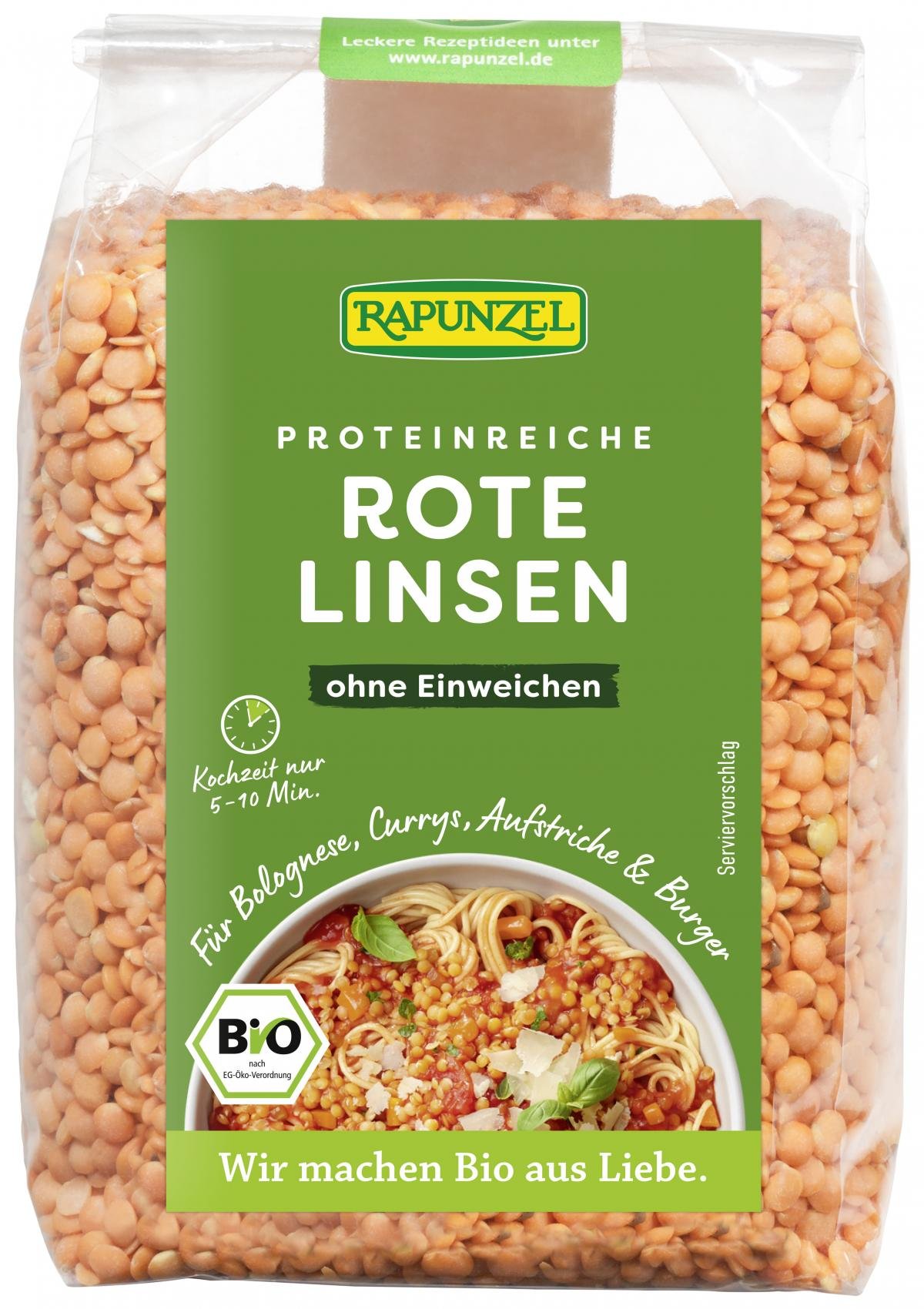 Die mild-nussige Linse für die schnelle Bio-Küche. Rote Linsen sind geschälte braune Linsen und werden nach kurzer Zeit sämig-weich. Sie müssen vor dem Kochen nicht eingeweicht werden und sind in nur 5-10 Minuten fertig gekocht. Der Anbau von Eiweißpflanzen wie Linsen, Bohnen oder Lupinen trägt zu einer vielfältigeren Fruchtfolge und damit zur Erhaltung der Bodengesundheit bei. Leguminosen benötigen im Anbau keinen Stickstoffdünger und reduzieren so die Belastung des Bodens. Gleichzeitig fördern sie durch die Anreicherung von Luftstickstoff in ihren Wurzeln die Bodenfruchtbarkeit. Außerdem dienen sie als wichtige Nahrungsgrundlage für Bestäuber wie beispielsweise Bienen.