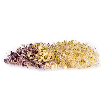Alfalfasprossen, Mungbohnenkeimlinge und Rettichsprossen