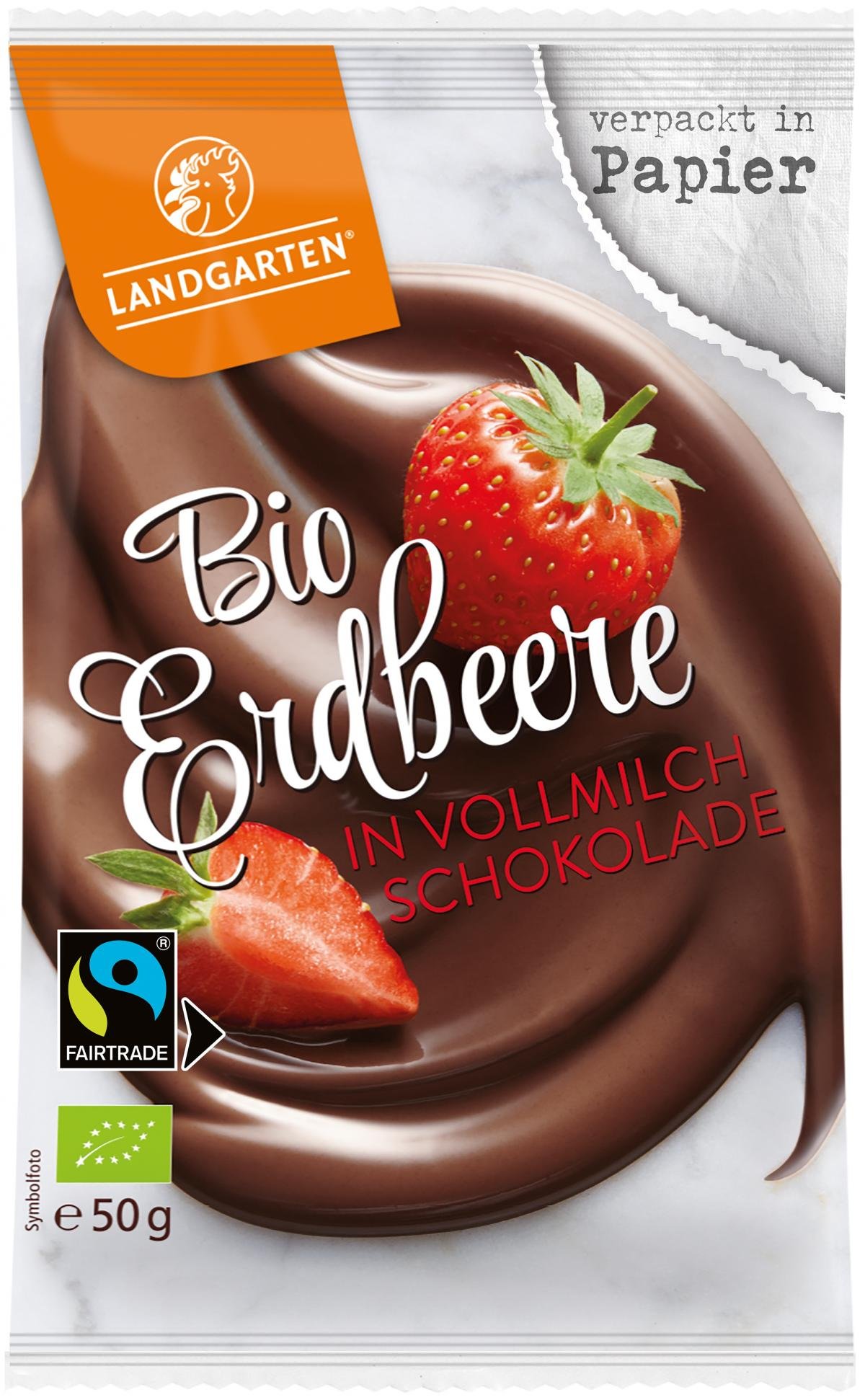 Vollmilchschokolade* 90% (Rohrzucker*, Kakaobutter*, VOLLMILCHPULVER*, Kakaomasse*, Emulgator: Lecithine (SOJA*)), Erdbeeren* 8%, Überzugsmittel: Gummi arabicum*; Zucker*, Dextrose*.. Kakao: 37% mindestens in der Vollmilchschokolade. Fairtrade-Kakao und Fairtrade-Rohrzucker können als Mengenausgleich mit nicht zertifiziertem Kakao und Rohrzucker vermischt werden. Mehr Info: info.fairtrade.net/sourcing Gesamtanteil: 70 %.