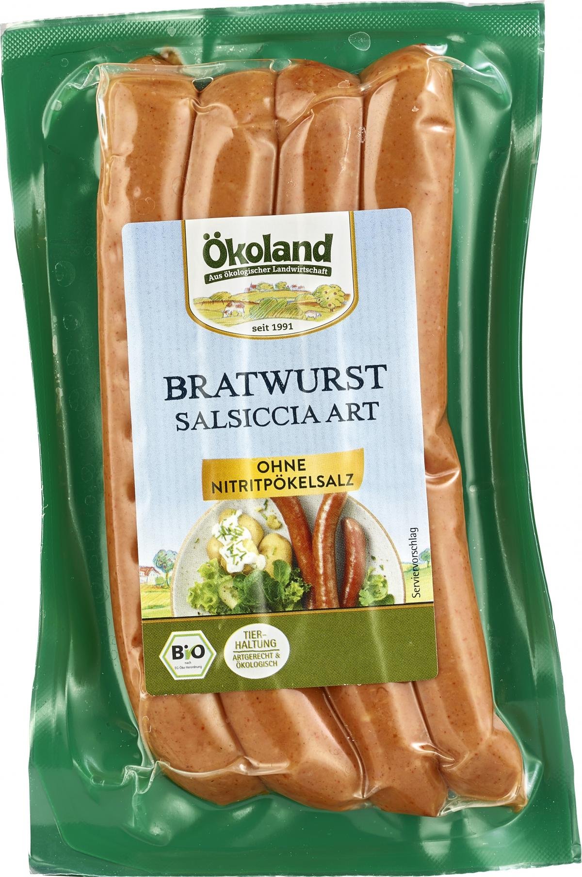Mit bestem Bio-Schweinefleisch, angenehm körniger Fleischeinlage und herzhaft mediterran gewürzt. Das Brühen und das milde Räuchern verleihen der Ökoland Bratwurst Salsiccia Art ihre Haltbarkeit. So bekommt diese beliebte italienische Spezialität ihren besonderen Ökoland-Charakter. Bioland-zertifiziert. Ohne Nitritpökelsalz und andere Zusatzstoffe hergestellt.