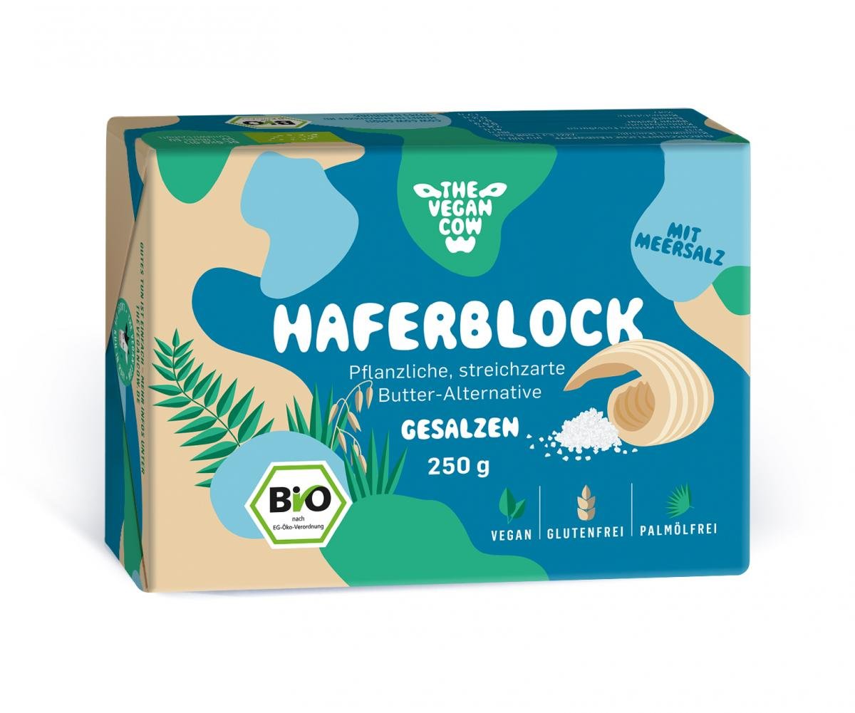 Unser HAFERBLOCKBUSTER bekommt Gesellschaft: die vegane Butter-Alternative von THE VEGAN COW gibt es jetzt in NATUR & GESALZEN. Schmeckt herrlich vollmundig und cremig. Ideal aufs Brot, zum Braten und Kochen.
