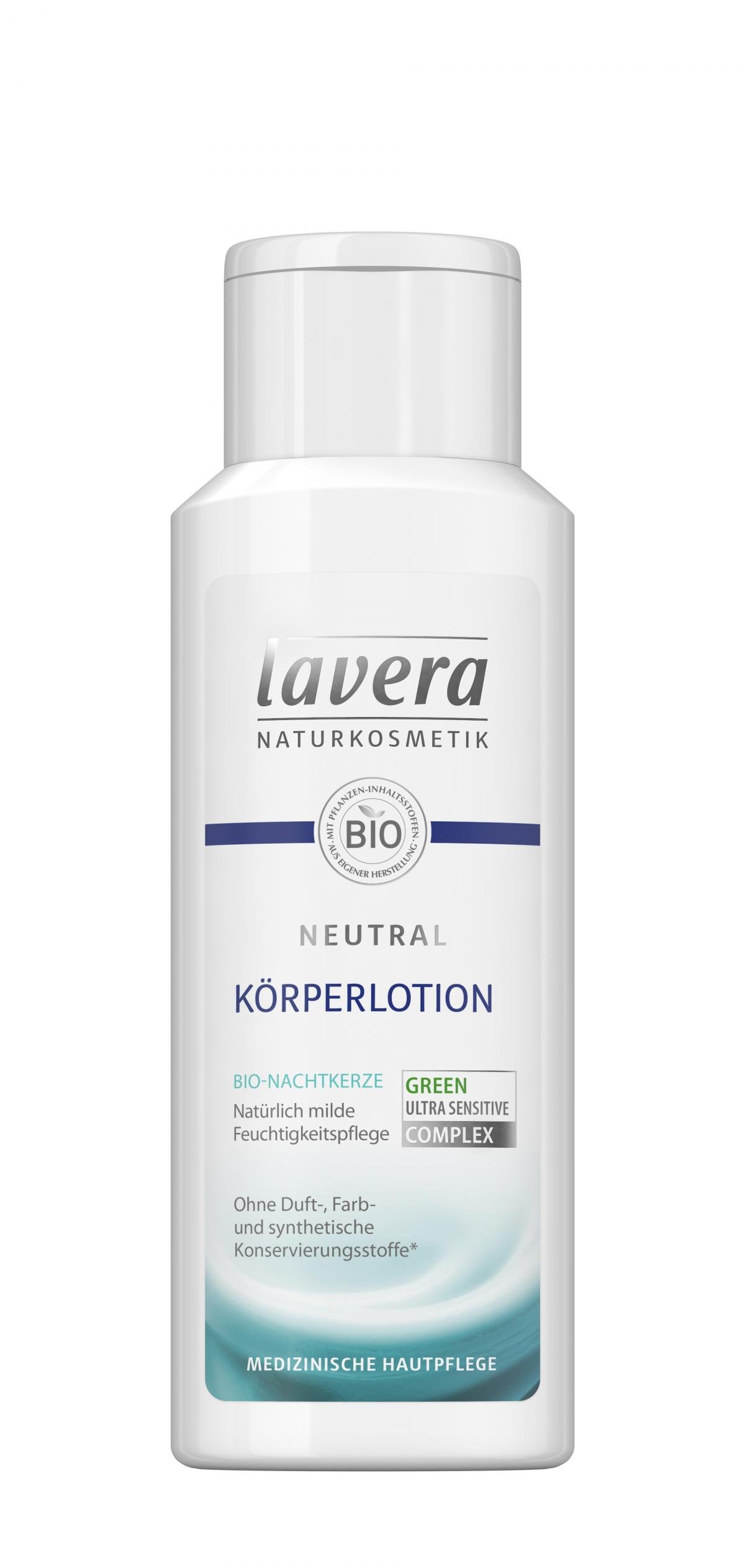Die lavera Neutral Körperlotion zieht schnell ein und spendet intensiv Feuchtigkeit. Die Haut wird beruhigt. Durch ihre pH-hautneutrale Wirkstoffkomposition aus Bio-Nachtkerze und Bio-Jojoba wird die hauteigene Regeneration unterstützt.