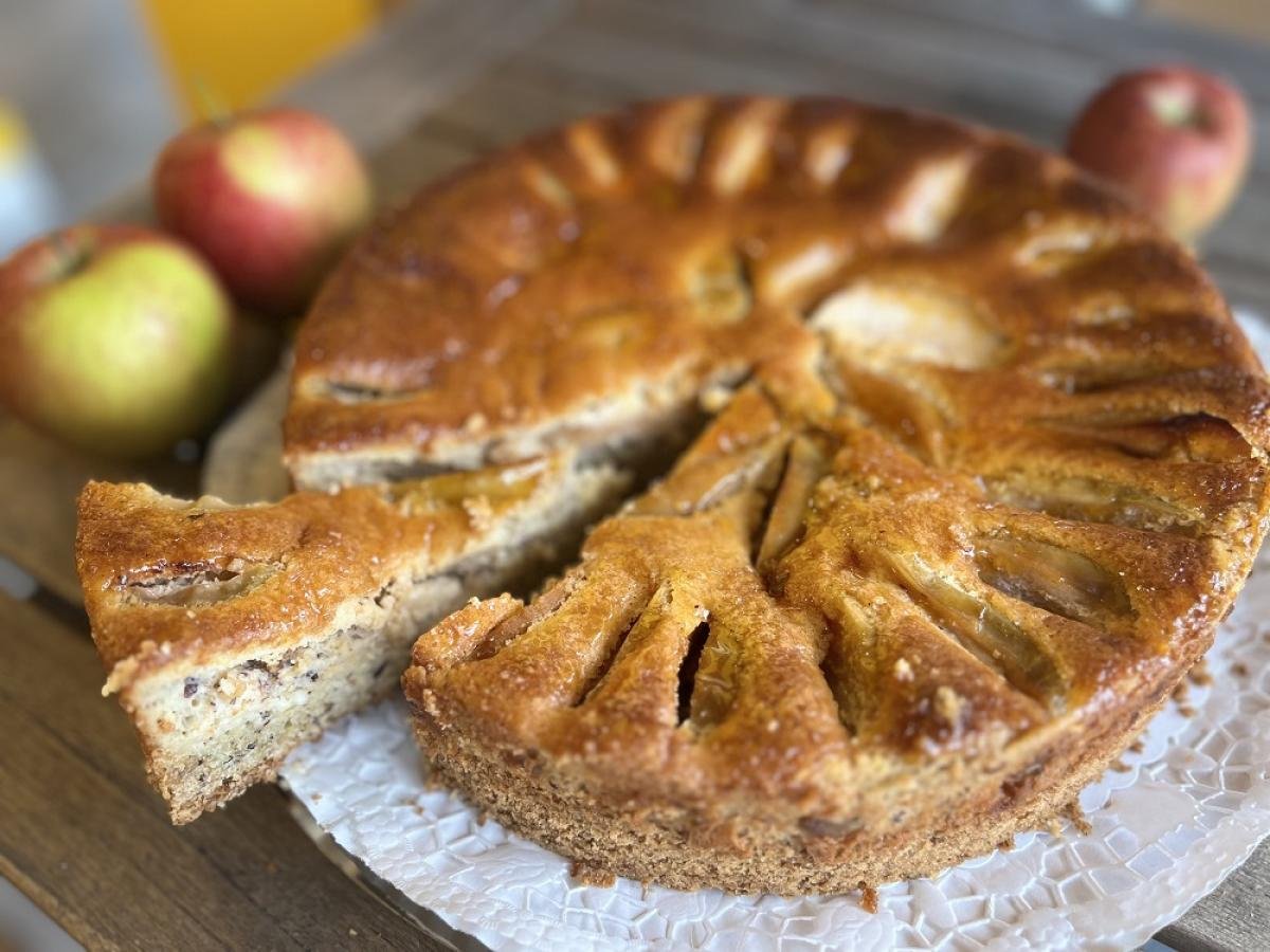 Apfel*, Rohrohrzucker*, DINKELVOLLKORNMEHL* ², EIER*, CREME FRAICHE*, BUTTER*, HASELNüSSE*, Aprikosenkonfitüre* (Rohrohrzucker*, Aprikosen*, Geliermittel: Pektin, Säuerungsmittel: Citronensäure), Maisstärke*, Weinsteinbackpulver (Säuerungsmittel [Monokaliumtartrat], Backtriebmittel [Natriumhydrogencarbonat], Maisstärke*), Zimt*, Meersalz, Vanille*. * ² = (UR-Weizen)
