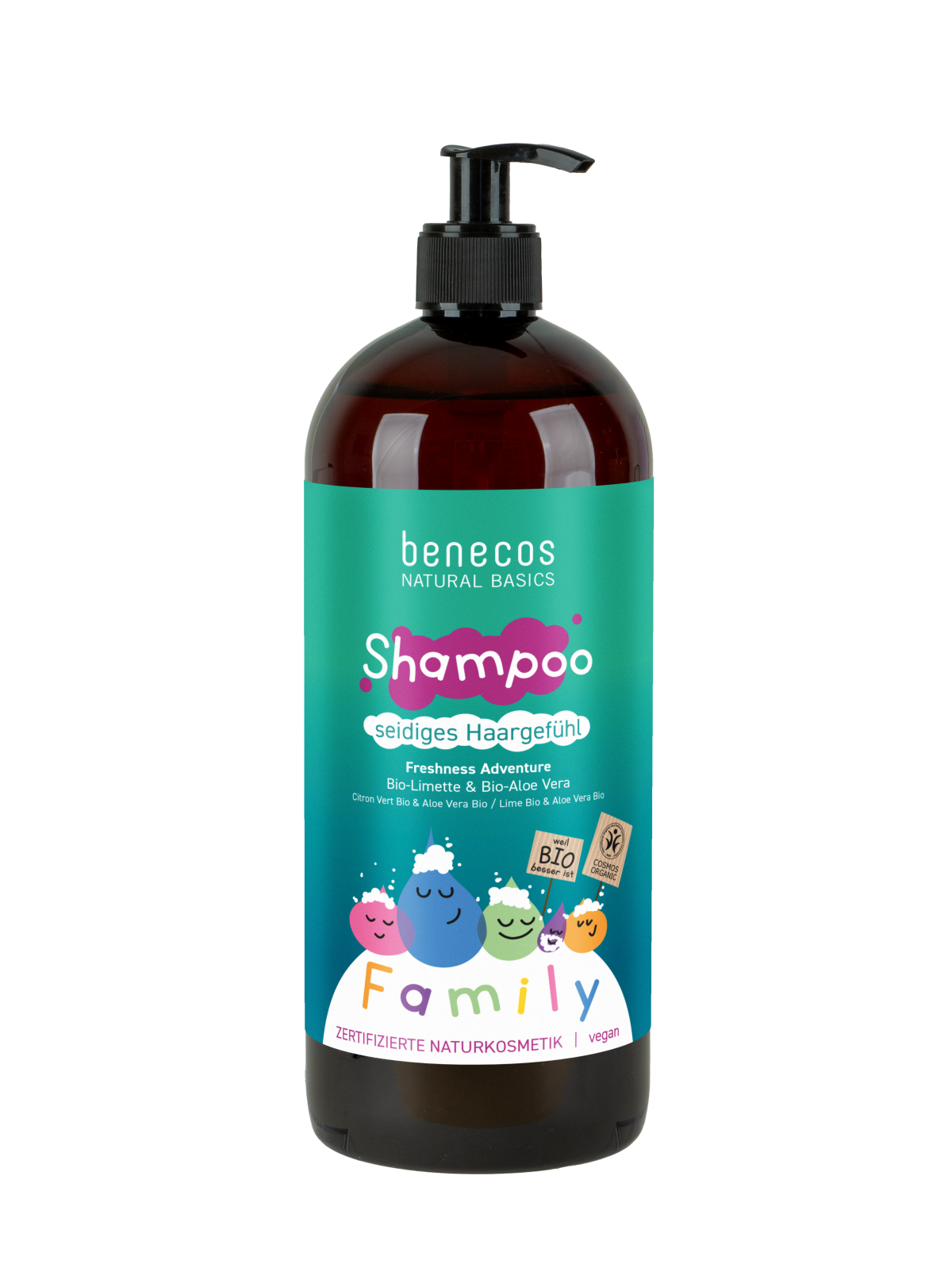 Das erfrischende Shampoo schenkt der ganzen Familie mit duftendem Bio-Limettenauszug, feuchtigkeitsspendendem Bio-Aloe Vera-Saft, regionalem Bio-Apfelsaft und Erbsenprotein rundum gepflegte Häupter. On top ist es reich an Lysin, das die Kopfhaut stärkt – für ein seidiges Haargefühl bei Groß und Klein!