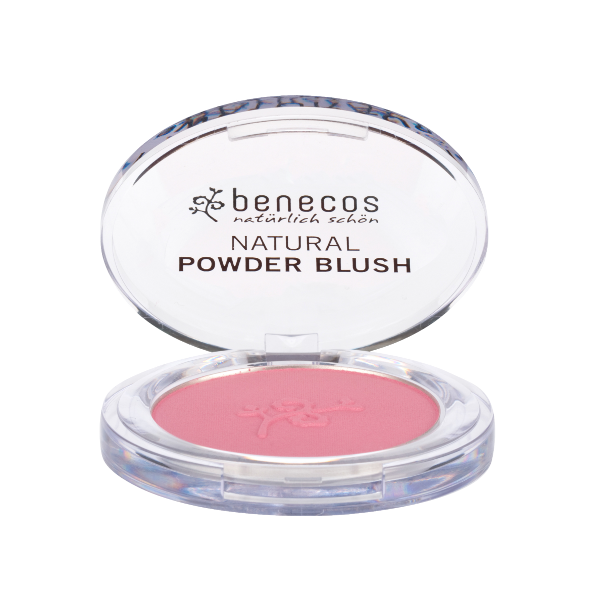 Der benecos Natural Powder Blush mit regenerierendem Macadamiaöl, hautschützendem Bio-Rizinusöl und zellschützendem Sonnenblumenöl besitzt eine seidig-feine Konsistenz und zaubert einen zarten Schimmer auf die Wangen.