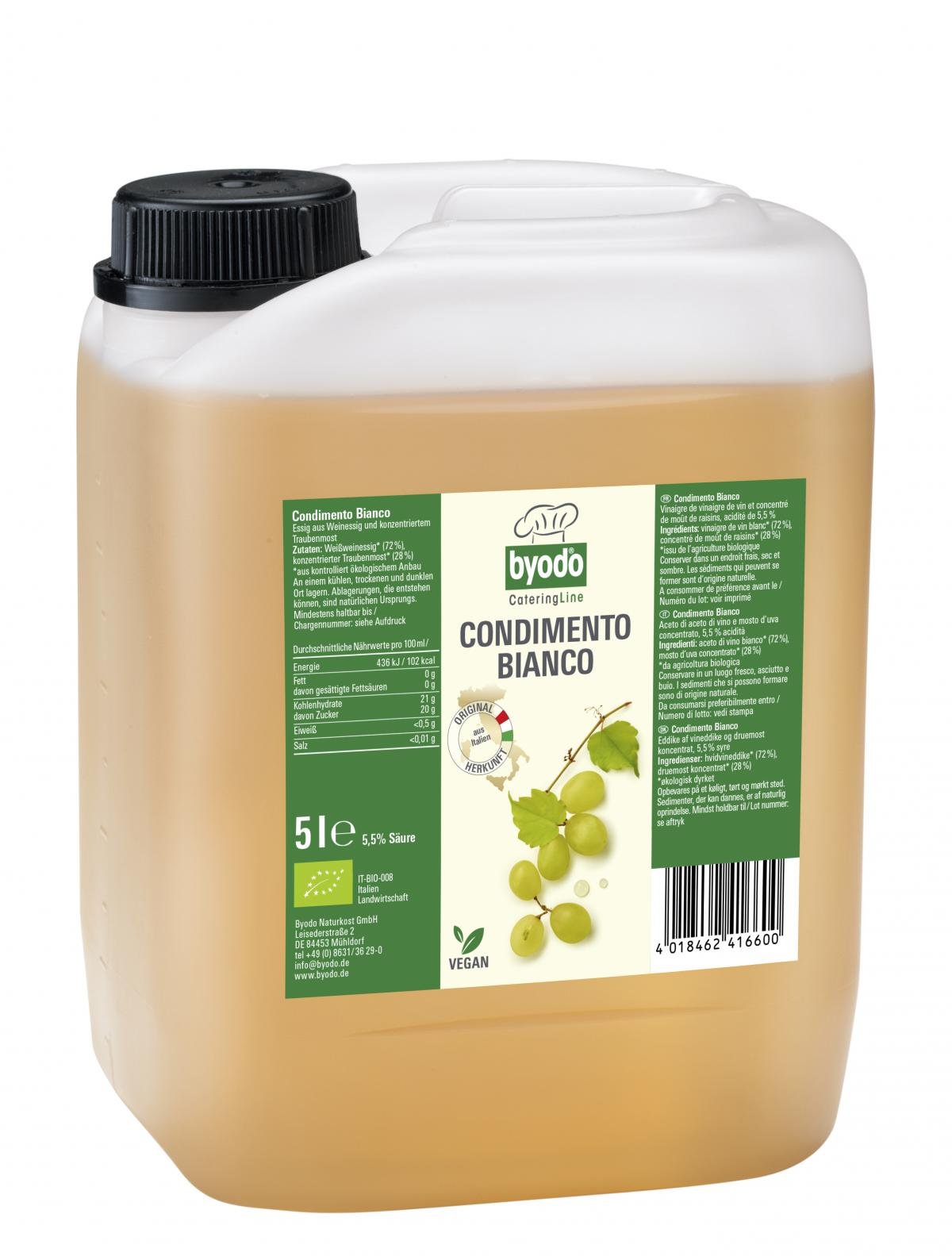 Der helle Balsamessig Condimento Bianco (5,5% Säure) von Byodo stammt aus dem Herzen der italienischen Essig-Produktion Modena. Die feine Mischung aus biologischem Weißweinessig und konzentriertem Bio-Traubenmost schmeckt wunderbar harmonisch und angenehm mild.