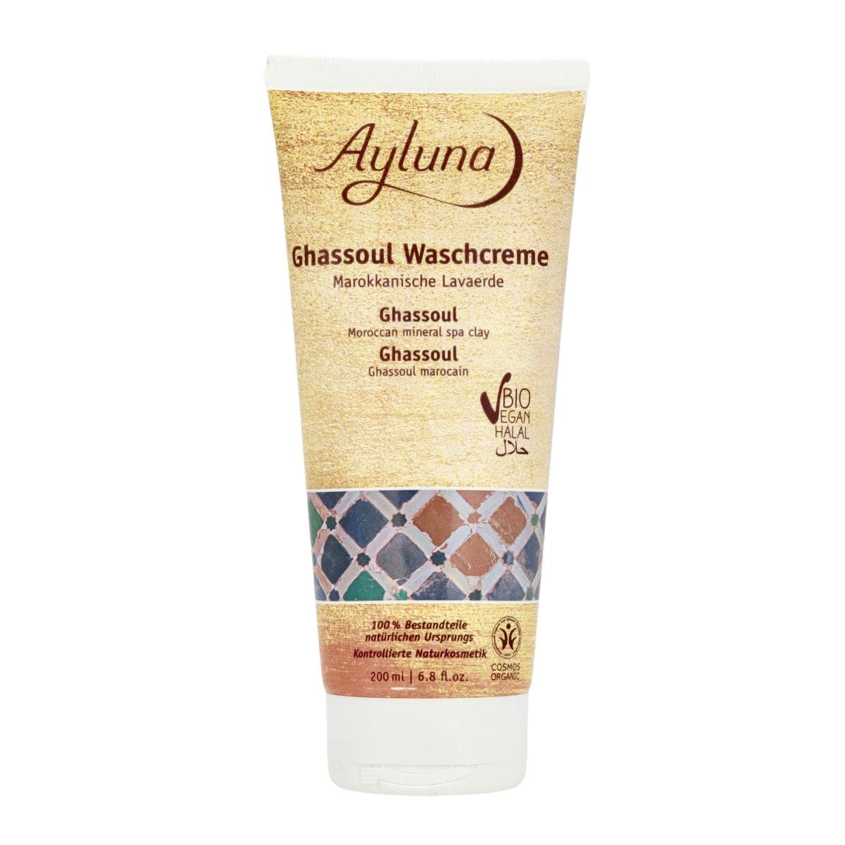 Ayluna Ghassoul Waschcreme für Haut und Haar beruht auf einem traditionellen Schönheitsgeheimnis des Orients: Purer marokkanischer Lavaerde aus dem Atlasgebirge, angerührt mit Bio-Rosmarinwasser und einem Hauch Lavendelöl. Zur täglichen sanften Reinigung einfach sanft auf die angefeuchtete Haut, beziehungsweise das angefeuchtete Haar einmassieren und mit warmem Wasser abspülen. Für alle Haut- und Haartypen geeignet, ideal bei empfindlicher Haut und Haar und/oder Schuppenneigung. Frei von Tensiden, Alkohol, Farb- und Konservierungsstoffen.