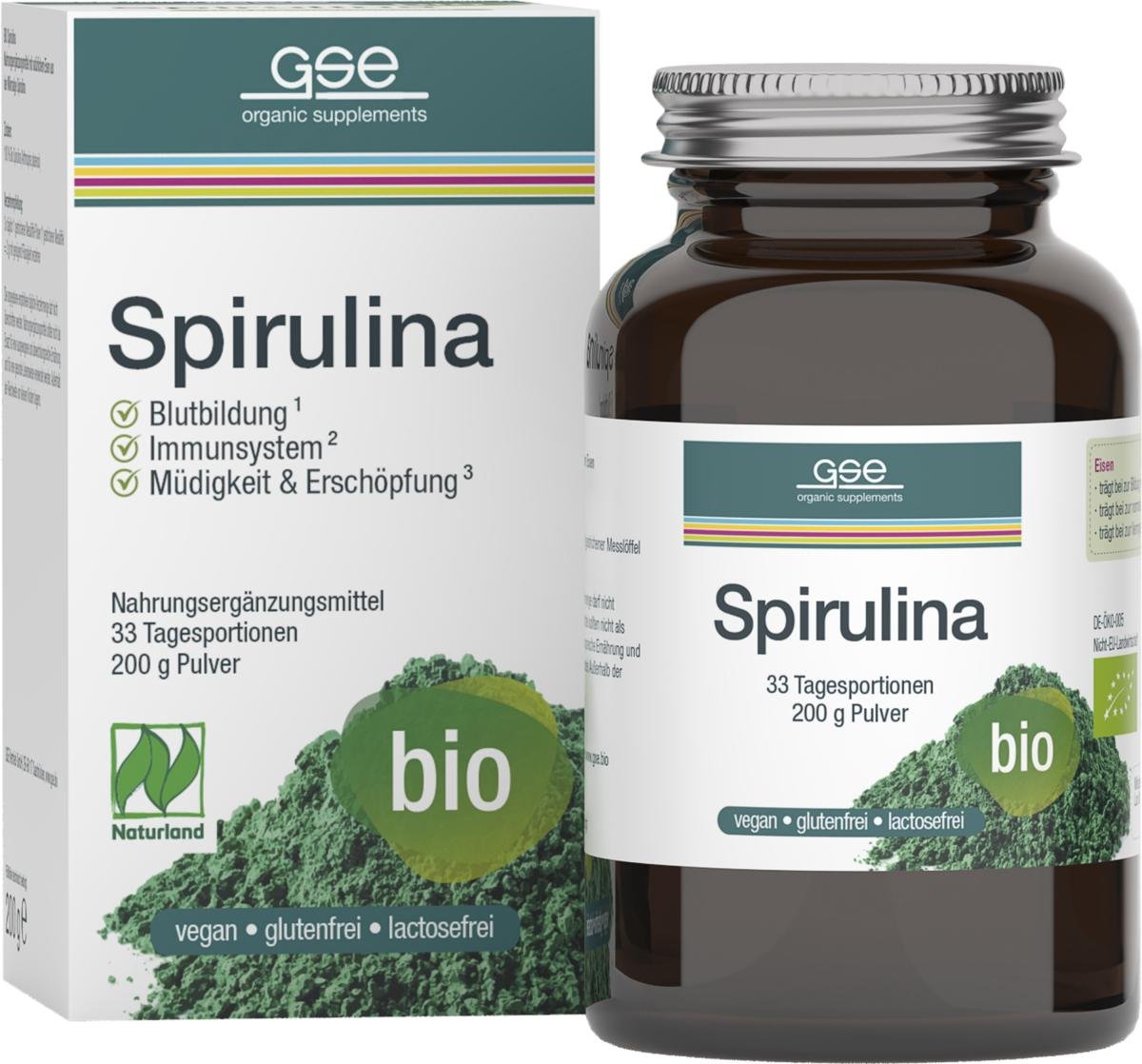 Spirulina aus der spiralförmigen Blaualge Spirulina platensis zählt zu den ältesten bekannten Organismen. Sie ist keine Meeresalge, sondern gedeiht in stark alkalischen Gewässern in subtropischen Gebieten.Neben einem hohen Gehalt an pflanzlichem Eiweiß enthält Spirulina auch wichtige Vitamine und Mineralstoffe (z.B. Eisen)
