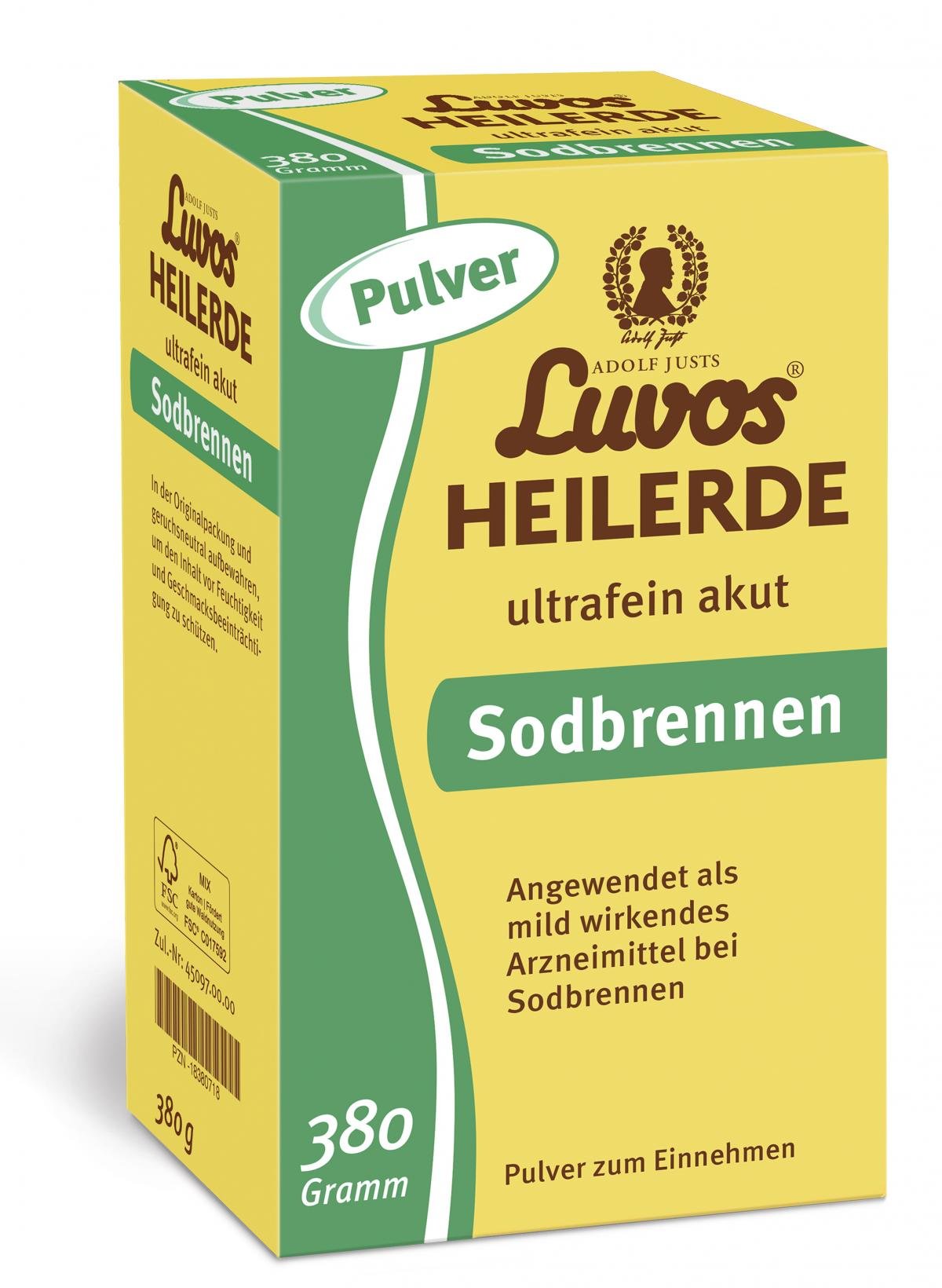 WIRKPRINZIP: Das Naturarzneimittel Adolf Justs Luvos-Heilerde ultrafein akut lindert bei Sodbrennen die Beschwerden schnell und effektiv: Die natürliche Heilerde besteht aus einer idealen Mischung aus Mineralien und Spurenelementen. Damit bindet sie überschüssige Säure.Nebenwirkungen sind nicht bekannt.