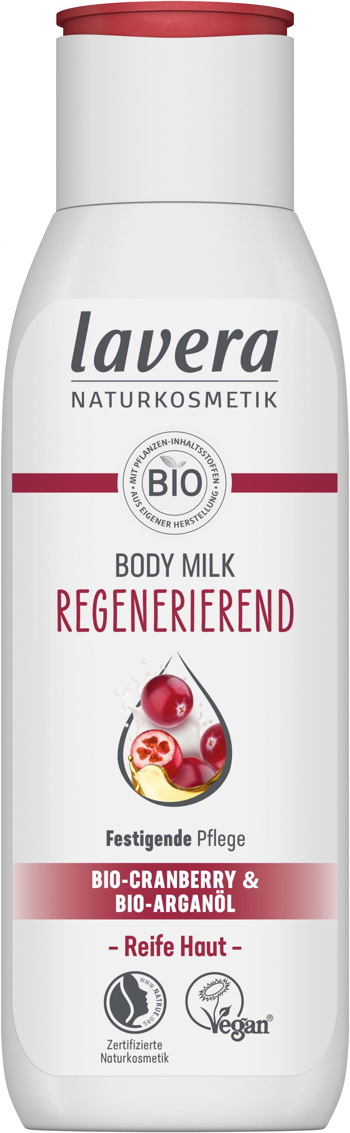 Die Body Milk Regenerierend mit Bio-Cranberry & Bio-Arganöl bietet eine festigende Pflege für reife Haut.