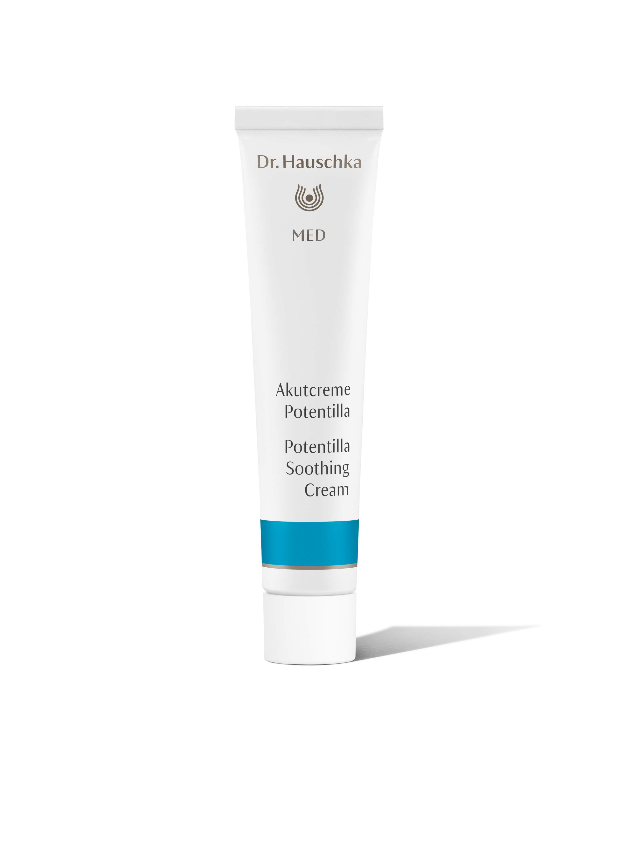 Die Dr. Hauschka MED Akutcreme Potentilla beruhigt gerötete, gereizte und juckende Hautpartien und schenkt ihnen besondere Pflege. Herzstück der Komposition ist der entzündungshemmende Extrakt aus Potentilla officinalis (Blutwurz), gewonnen aus dem rotbraunen Wurzelstock. Die Besonderheit der Pflanze liegt unter der Erde – hier konzentrieren sich all ihre Kräfte. Zu Entzündung neigende Haut benötigt diese strukturierenden Impulse, die die gereizte Haut wieder ins Gleichgewicht bringen. Die angenehm pflegende Creme mildert Rötungen und sorgt für schnelle Juckreizminderung. Studien bestätigen die sehr gute Hautverträglichkeit und Pflegewirkung auch bei Neurodermitis. Die Akutcreme Potentilla ist bewusst unparfümiert und auch für Kleinkinder geeignet.