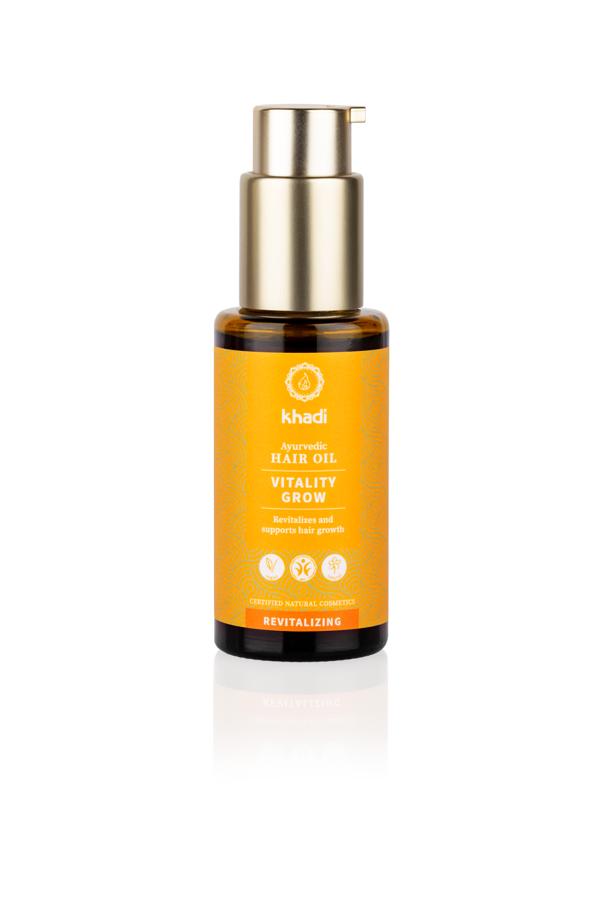 khadi Vitality Grow Ayurvedisches Kopfhaut- und Haaröl - spürbar mehr Vitalität, belebte Kopfhaut und dichten Haarwuchs.