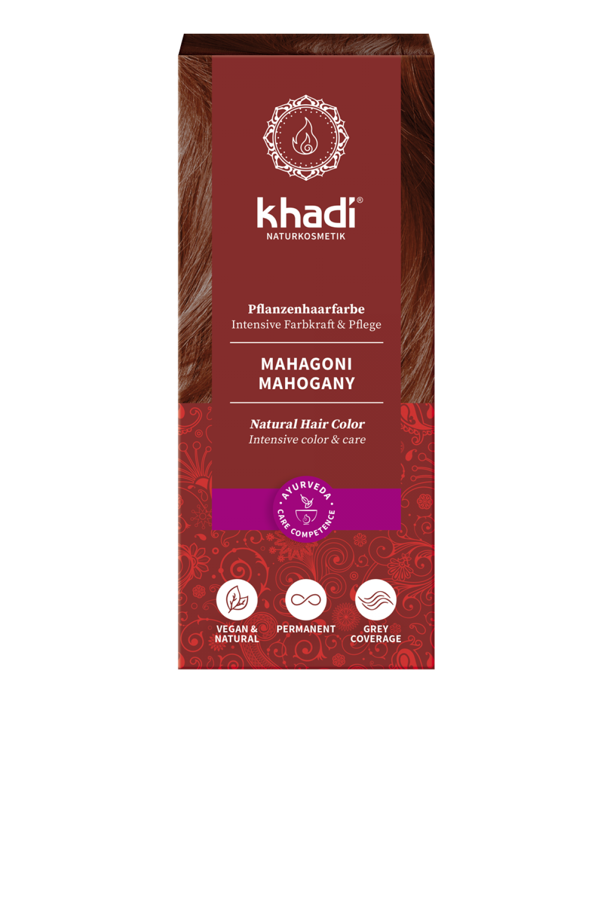 Die Brücke zwischen Rot und Braun – khadi Pfanzenhaarfarbe Mahagoni färbt Dein Haar in einem ausdrucksstarken Rotbraun. Die rein pflanzlichen Wirkstoffe verleihen Deinem Haar intensiv leuchtende Farbreflexe und spenden reichhaltige Pflege. khadi Mahagoni bringt natürlich strahlende Farbe, Volumen und Glanz in Dein Haar.