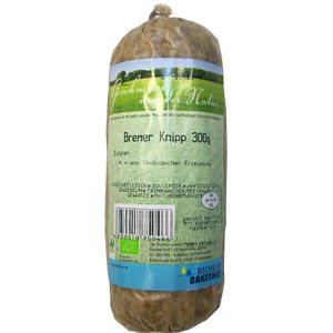 Schweinefleisch*30%, Schweinespeck*, Hafergrütze*, Zwiebeln*, Trinkwasser, Meersalz, Gewürze*, Kunstdarm,