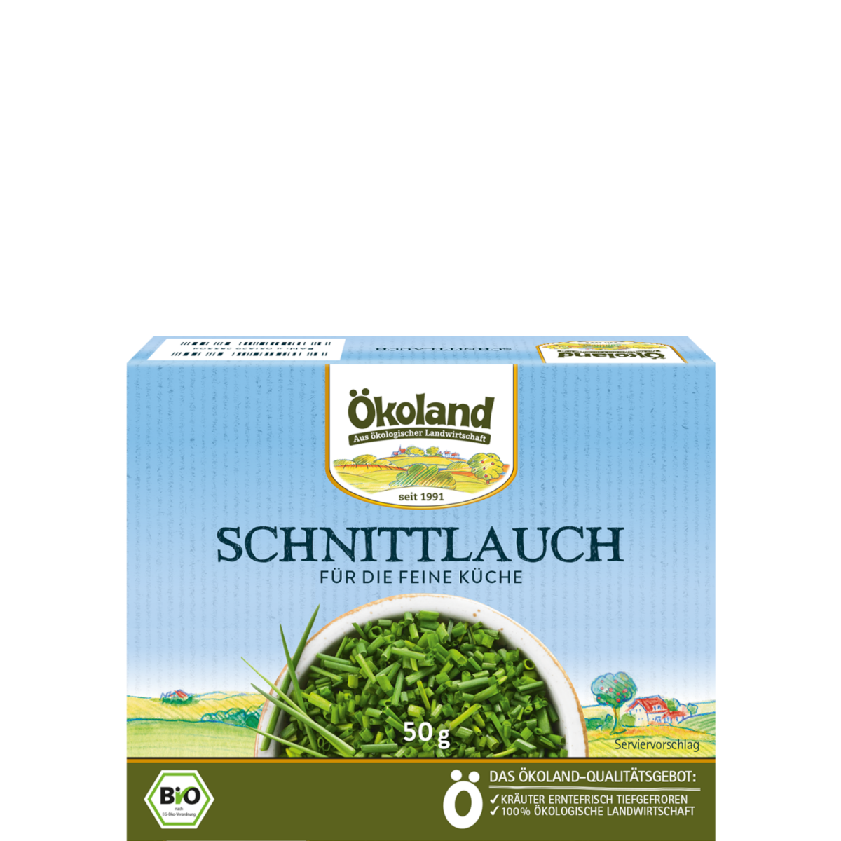 Bio-Schnittlauch fein geschnitten, streufähig, erntefrisch tiefgefroren, in der praktischen wiederverschließbaren Faltschachtel