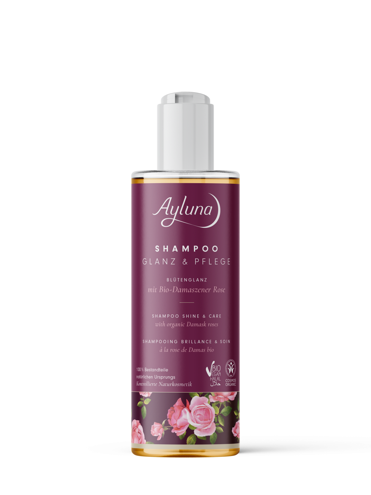 Traditionelle Pflanzengeheimnisse für schönes Haar: Shampoo Glanz & Pflege mit Bio-Damaszener Rose schenkt jedem Haar an jedem Tag unbeschwerte Pflege und nachhaltigen Glanz. Mit zartem Rosenduft. Frei von Silikon/Paraffin, synthetischen Farb- und Duftstoffen.