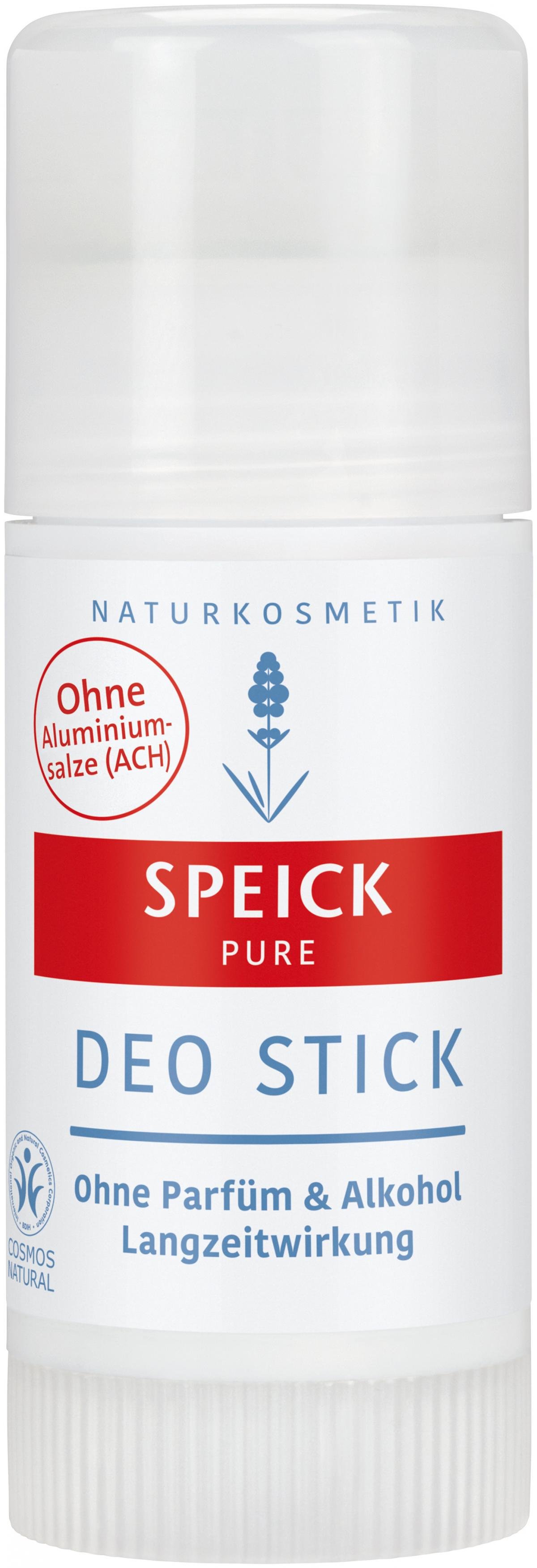 100 % Pure, 100 % Wirkung. Der Speick Pure Deo Stick hat ein ganz eigenes Deo-Wirkprinzip. Neben seiner Langzeitwirkung bindet und neutralisiert er auch bereits entstandene Gerüche, und das ganz ohne Alkohol und Aluminiumsalze. Auf Duftstoffe wird bewusst komplett verzichtet. Hautberuhigendes Schilfrohrextrakt, Zink-Komplex und hautcremendes Flüssigwachs pflegen die Haut bei der Anwendung. Enthält den einzigartigen Extrakt der hochalpinen Speick-Pflanze.