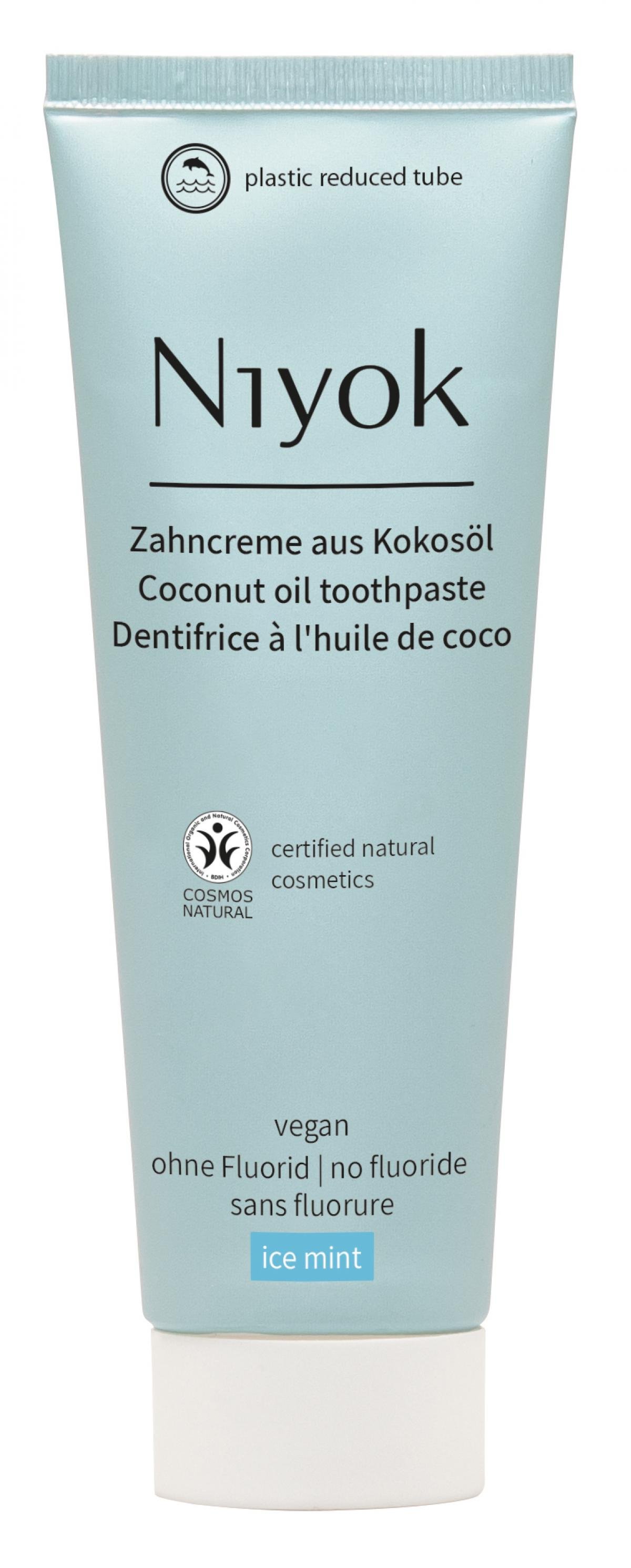 Die natu¨rliche Zahncreme aus Kokosöl von Niyok schu¨tzt Zähne und Zahnfleisch. Hochkonzentriertes Bio-Kokosöl beugt Entzu¨ndungen vor und wirkt anti-bakteriell. Milde Putzkörper aus Calciumcarbonat reinigen die Zahnoberflächen gru¨ndlich und wirken remineralisierend (ohne Fluorid). Xylit komplettiert den Wirkstoffkomplex, indem es Kariesbakterien an der Reproduktion hindert. Verpackt in einer plastikreduzierten Kreide-Tube.